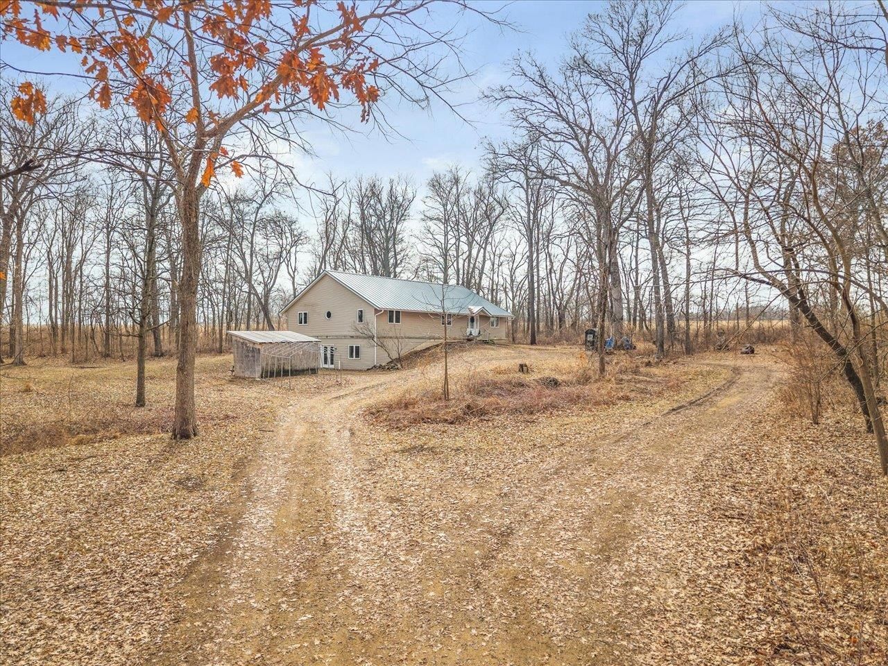 Nearly 10 ACRES of wooded privacy surround this spacious 2,400 sq ft home, offering the perfect blend of comfort and nature. The main level features beautiful HICKORY, MAPLE, and CHERRY wood flooring throughout, creating warmth and character in every room. The expansive kitchen is a standout with abundant CUSTOM, KRAFTMAID, CHERRY CABINETRY and plenty of space for cooking and gathering. It opens to a bright living and dining area with vaulted ceilings and walls of windows, bringing in natural light and showcasing peaceful views of the surrounding landscape. A large foyer with slate floors provides a beautiful entry into the home. Enjoy the comfort of RADIANT FLOOR HEATING on both the main and lower levels. The FULL, UNFINISHED, WALK-OUT LOWER LEVEL features 9-foot ceilings, a half bath (roughed in for a full bath), and is roughed in for a second kitchen, offering excellent potential for additional living space, guest quarters, or entertaining. The large primary suite includes a jetted tub, step-in shower, dual sinks, and a generous walk-in closet. A main floor laundry room adds everyday convenience. Outside, the property truly shines with mature woods, Concord grape vines, and abundant wildlife, including deer and turkey-perfect for those who appreciate nature and privacy. The home also features a maintenance-free steel roof, NEW cooktop (2025), and new dishwasher (2023). If you're looking for space, privacy, and a peaceful country setting, this property offers it all.