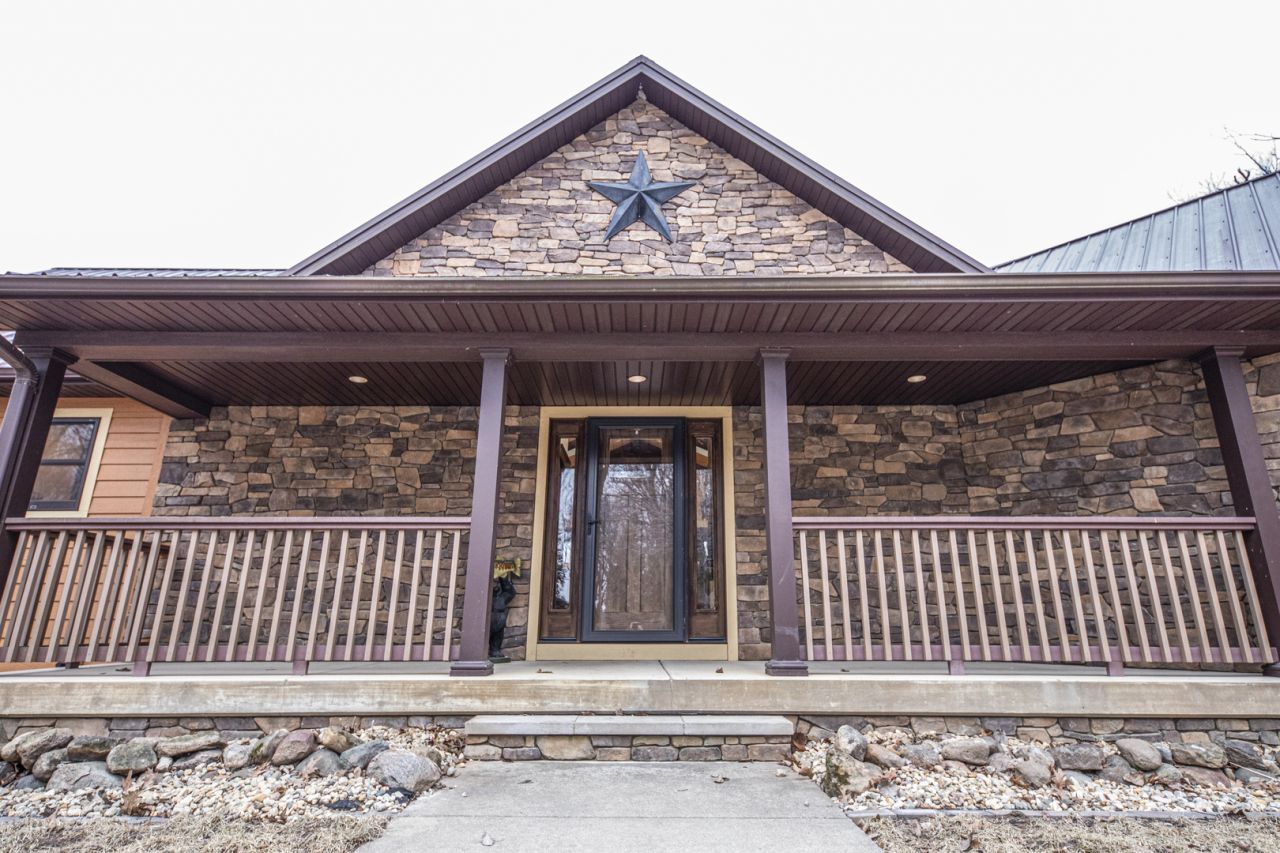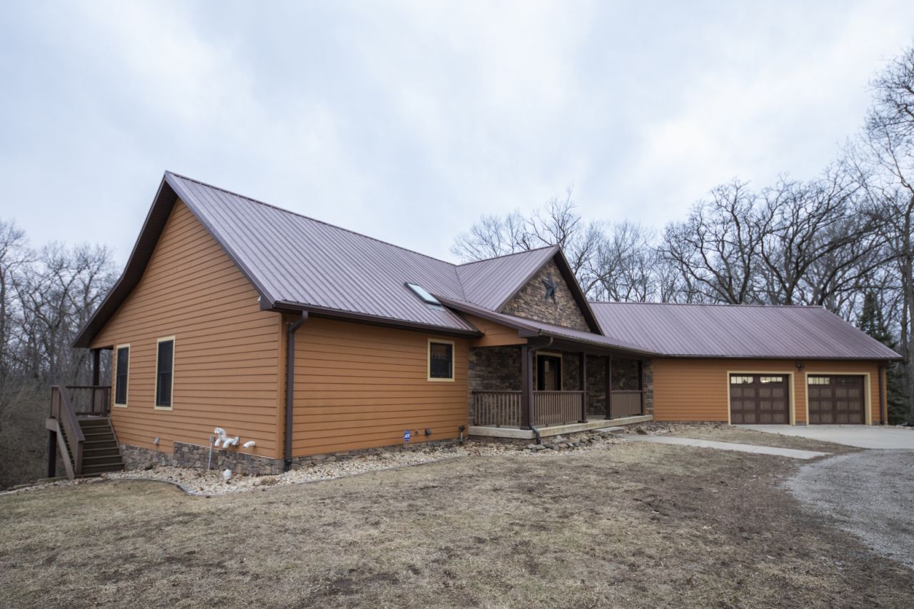 Nestled on 23 beautiful acres, this quiet country home offers the perfect blend of privacy, space, and outdoor adventure. Surrounded by nature and abundant wildlife, this property is a dream for outdoor enthusiasts and hunters alike. Included in the 23 acres are 5.5 acres that could be lease for farming or pastured for livestock or horses. The land is loaded with deer and comes set up with a dedicated deer hunting blind, making it ready for the upcoming season. Whether you're an avid hunter or simply enjoy watching wildlife roam, this property delivers an unmatched rural experience. The home features a back porch that spans the entire length of the house, the perfect spot to sip your morning coffee, unwind in the evening, and take in peaceful country views year-round. The main level features a spacious master bedroom with a private master bathrrom, plus an additional full bathroom for guests. Downstairs, the expansive finished basement provides incredible flexibility with three bedrooms and three bathrooms, ideal for guests, extended family, or multi-generational living. The basement also features radiant floor heat for year-round comfort and a convenient kitchenette, making it perfect for entertaining or creating a separate living space. Car lovers, hobbyists, or anyone needing extra storage will appreciate the attached three-car garage with radiant floor heat, plus an additional detached three-car garage that is all set up for radiant floor heat, offering plenty of room for vehicles, equipment, ATVs, or workshop space. If you're looking for a quiet country home surounded by timber, privacy, and room to roam, this one checks all the boxes.