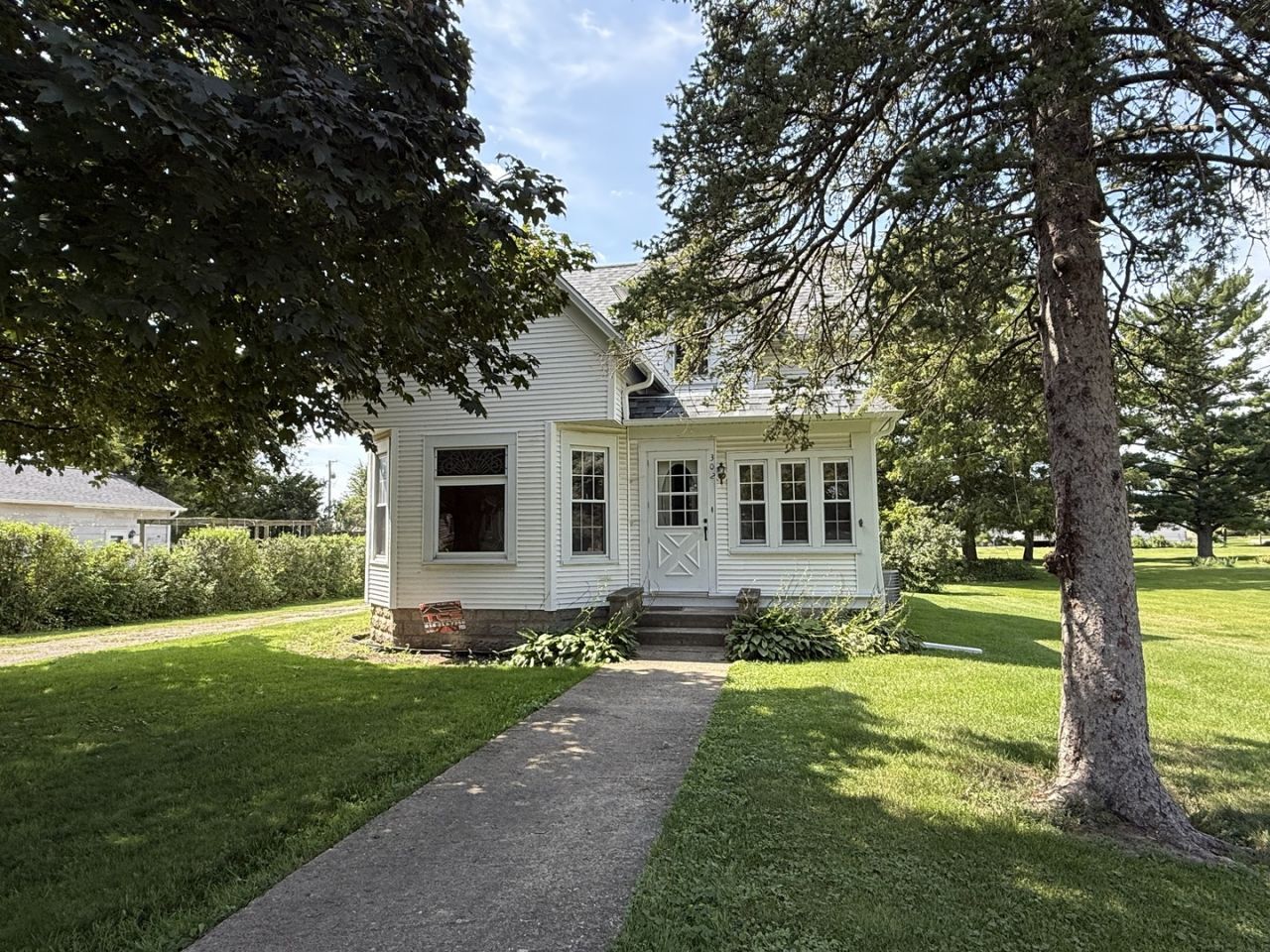 This charming two story home is all ready to move into. It still has all the natural wood work, pocket doors. In the living room is a beautiful wood plate rack that goes all around the wall to hold your memorabilia. Also, the home has a large family room and living room that is perfect for gatherings or just relaxing. A Master bedroom, bath and laundry and central air on first floor, front enclosed porch, 3 more bedrooms up with 3 large closets in the hallway as you enter the up stairs. Included is a 1.5 car detached garage with plenty of parking spaces out side for 6 vehicles. Plus, the location near a park and downtown. Newer roof and gutters (2025). This wonderful home has a lot of character, great features and won't last long! Call today for a showing! Realtor is related to the family! Home is sold AS IS!