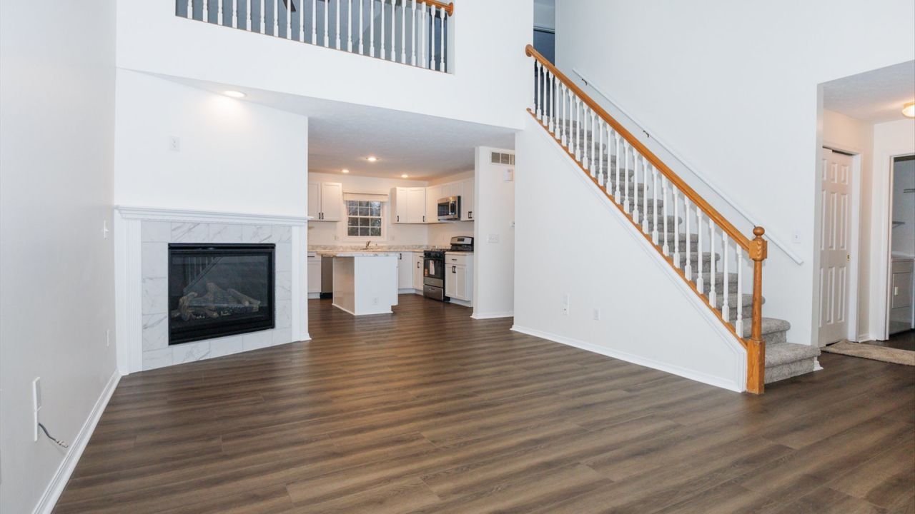 Beautifully fully renovated 2-bedroom, 2-bath home in Bloomington! Step inside to discover a bright and open layout featuring vaulted ceilings in the family room. Brand-new luxury vinyl flooring flows seamlessly throughout the home, offering both style and durability. The inviting family room centers around a cozy gas fireplace - perfect for relaxing evenings at home. The eat-in kitchen is thoughtfully designed with an island for extra prep space, casual dining, and entertaining. Convenience meets comfort with a main-floor primary bedroom and a full bathroom on the first level. Upstairs, you'll find the second full bathroom and a versatile loft that overlooks the family room - ideal for a home office, reading nook, or additional lounge space. The finished basement expands your living options with additional gathering space, complete with a built-in wet bar - perfect for hosting friends and family. A dedicated storage area keeps everything organized and tucked away. Step outside onto the deck, where you can enjoy your morning coffee or unwind with dinner in the evening breeze. A 2-car attached garage adds everyday convenience and extra storage. This completely updated home offers modern updates, functional living space, and inviting charm - ready for you to move in and enjoy!
