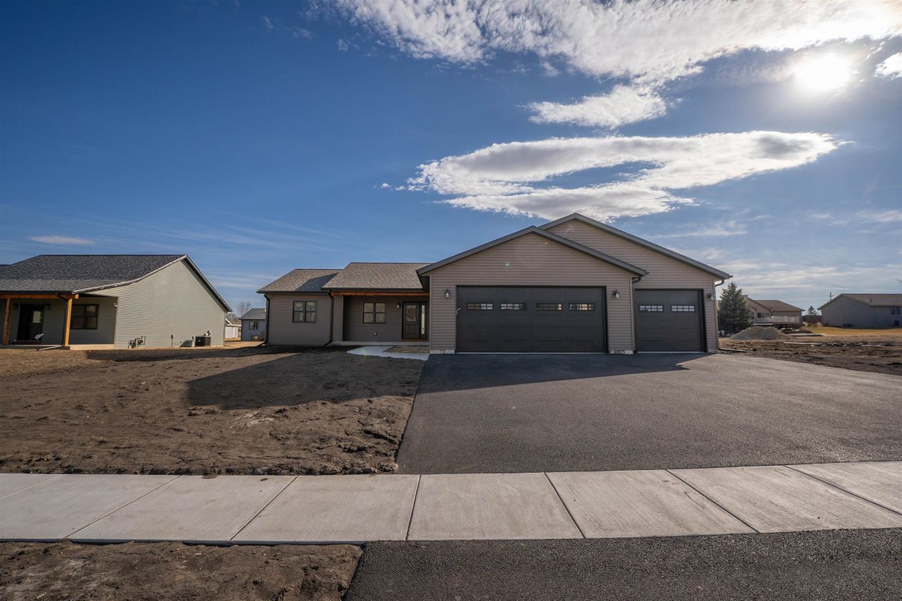 Move in ready and located in the desirable Homestead Subdivision in Stillman Valley, this brand new construction home offers the perfect balance of small town living and modern comfort. Featuring 4 bedrooms, 3 full bathrooms, and a 3 car garage, this home sits in a great location with close proximity to Stillman Valley Schools and downtown while still holding onto the rural charm the area is known for. The main level offers 1,870 square feet of thoughtfully designed living space, with an additional 1,500 square feet in the finished lower level that provides plenty of room for everyday living and entertaining. Step up onto the oversized covered front porch that adds both curb appeal and everyday practicality as you enter the home. Inside, the open concept layout connects the kitchen and spacious family room, creating a welcoming space that is perfect for gathering with friends and family. The kitchen is designed with both style and function in mind, featuring quartz countertops, an oversized island, beautiful hickory cabinets, and a generously sized pantry that provides excellent storage. The thoughtfully designed split bedroom floor plan offers privacy with the master suite set on one side of the home while the other two bedrooms sit on the opposite wing. The master suite is a true retreat featuring a spacious bedroom and a luxurious en suite bathroom complete with a double vanity and a walk in tile shower that includes multiple shower heads and a rainfall feature. The additional bedrooms share a full bathroom that is ideal for family or guests. The finished lower level provides excellent additional living space. The large open area can easily serve as a game room, home theater, or second family room. Off to the side is additional space that can function as a fourth bedroom, office, or home gym. With an egress window bringing in natural light, this area offers flexibility to meet a variety of needs. Out the back of the home you will find space to enjoy the backyard and quiet surroundings of the neighborhood, offering a great setting for relaxing evenings or gatherings with friends and family. Additional highlights include a wide blacktop driveway, energy efficient Marvin windows, and a well designed three car garage that includes a 9x8 third overhead door, offering extra clearance for larger vehicles or equipment. Located within the Meridian 223 School District, this property combines the benefits of new construction with the welcoming feel of the Stillman Valley community.
